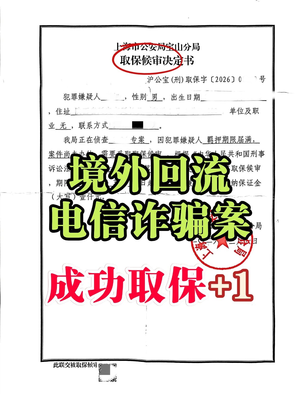 律师通过多次会见、全面核实案情,线上线下同步与办案单位充分沟通,提交取保材料,为当事人成功取保,获得自由。